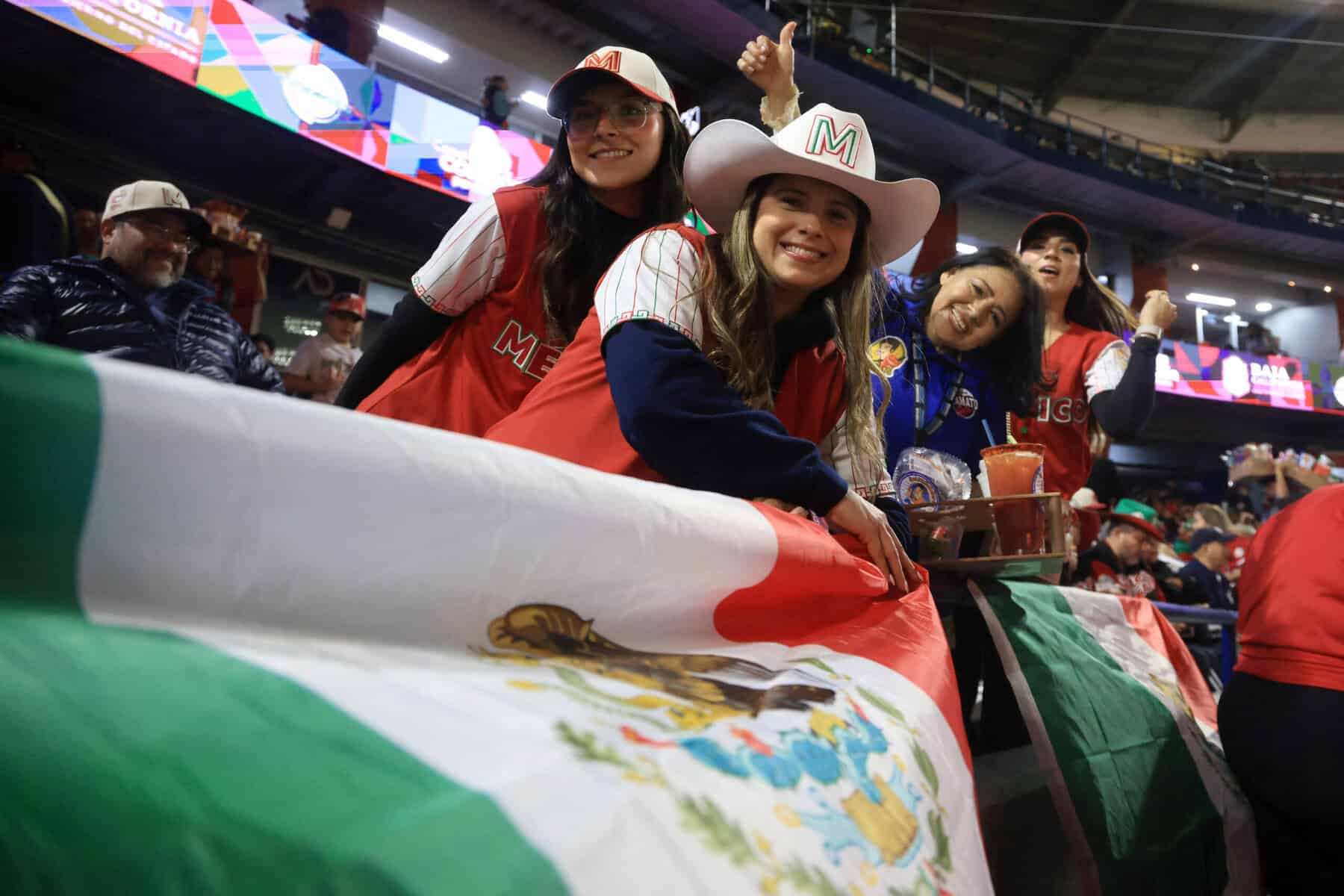 (ARCHIVOS) Los fanáticos de México posan para una foto antes del primer lugar del torneo de béisbol de la Serie Caribe, partido de playoffs entre la República Dominicana y México en el Estadio El Nido De Los Águilas en Mexicali, estado de Baja California, México, el 7 de febrero de 2025. México será el nuevo anfitrión del torneo de béisbol de la Serie del Caribe 2026 después de que algunos equipos se negaran a viajar a Venezuela, el anfitrión inicial, en medio de la crisis sobre el despliegue militar de los Estados Unidos en el Caribe, anunciaron los organizadores el 18 de diciembre de 2025. (Foto de FAUSTO IBARRA / AFP)