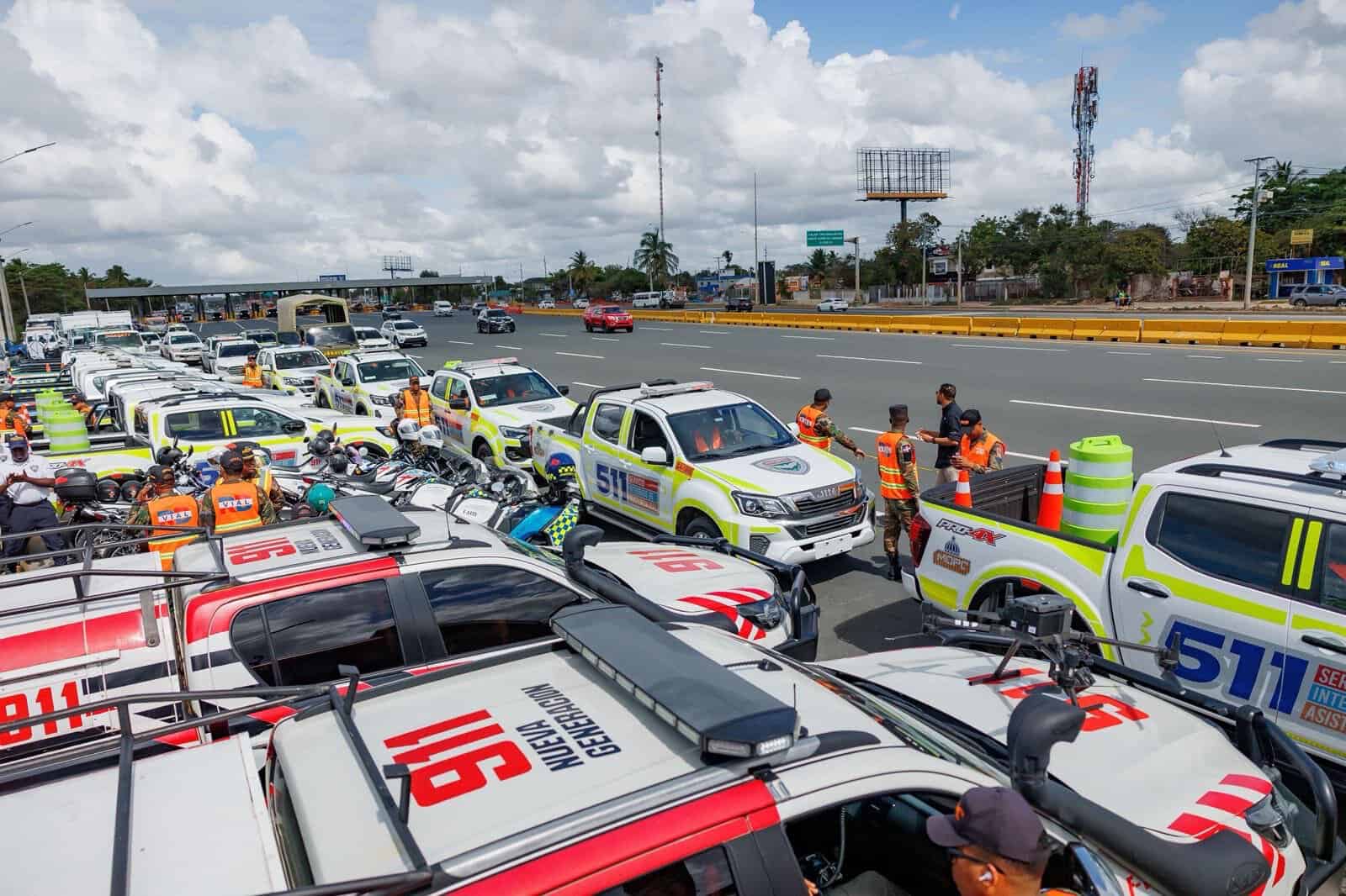 El Fideicomiso RD Vial incorporó 30 nuevas unidades especializadas —5 camiones de rescate, 12 grúas, 12 talleres móviles y un camión de bomberos— que se sumaron a las más de 200 unidades que la Comisión Militar y Policial (COMIPOL) opera de forma permanente en las principales autopistas del país. En total, el dispositivo movilizó alrededor de 3,600 efectivos de COMIPOL y RD Vial, cubriendo 3,200 kilómetros de carreteras y 34 tramos carreteros.