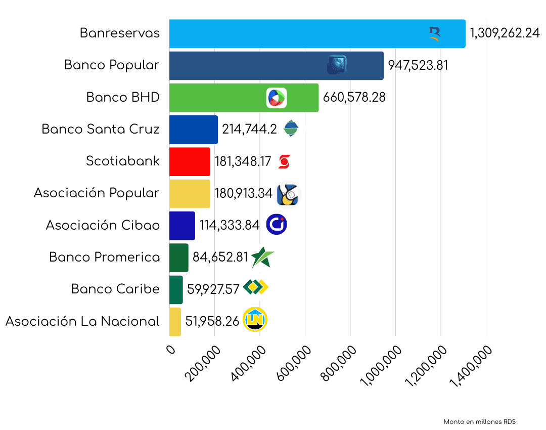 La brecha frente al segundo lugar supera los RD$361,700 millones.