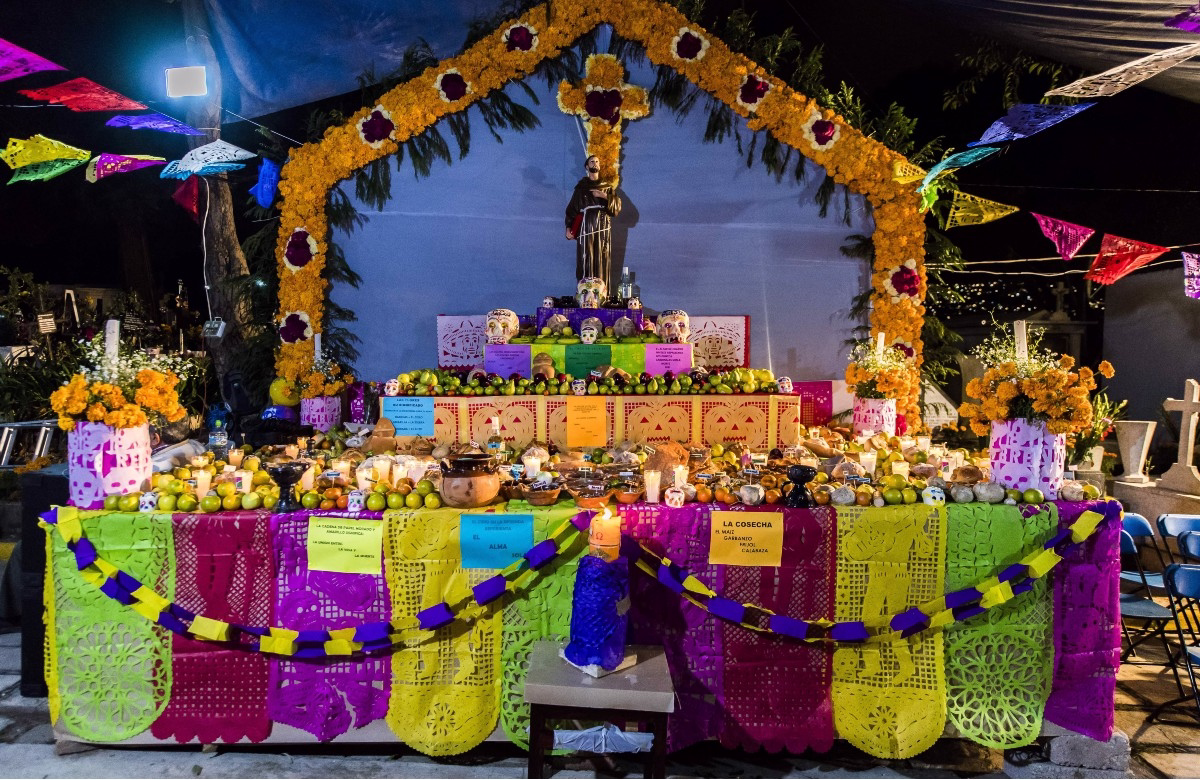 El resultado fue una expresión cultural profunda: los altares de muertos adornados con flores de cempasúchil, velas, fotografías, pan de muerto, calaveras de azúcar y los platillos favoritos de los difuntos.