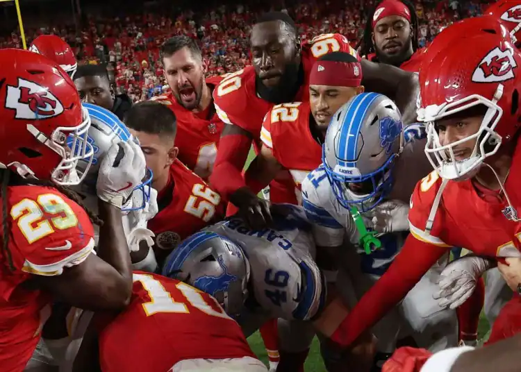 Kansas City, Misuri.– Lo que comenzó como un gesto deportivo terminó en caos. La pelea entre los Kansas City Chiefs y los Detroit Lions estalló el domingo 12 de octubre, justo después de la victoria de Kansas City por 30-17 en el Arrowhead Stadium, dejando un cierre amargo a una jornada de NFL.