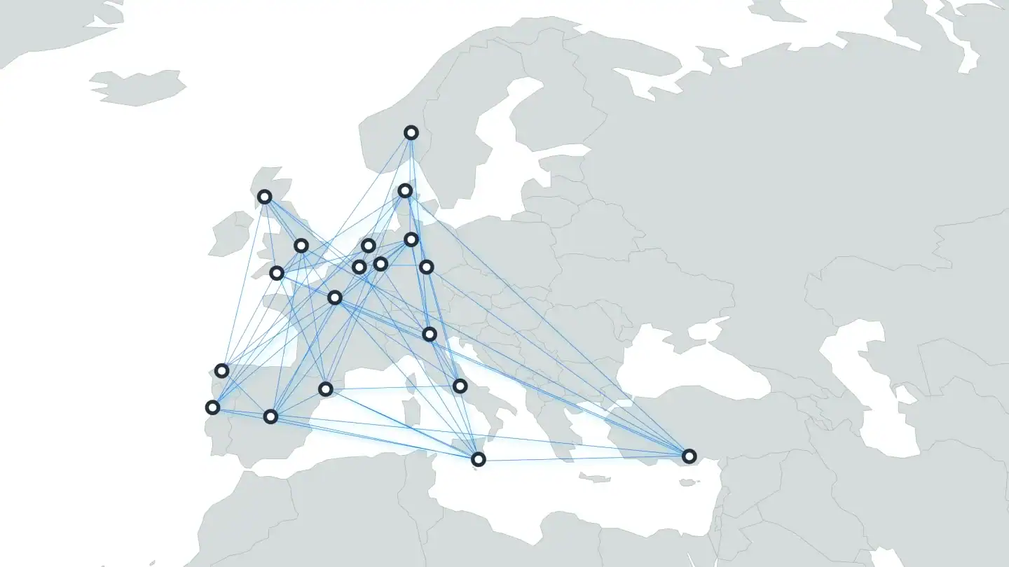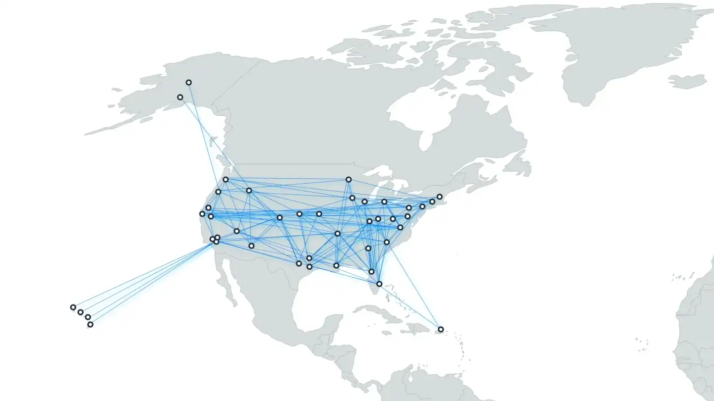 Extensa red aérea: más de 100 aviones y cientos de vuelos diarios.