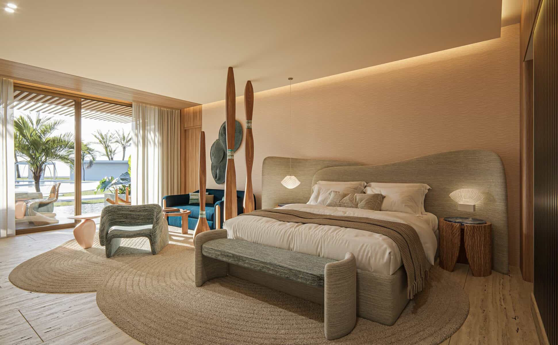 La propuesta nace bajo el concepto de lujo relajado, con espacios donde interior y exterior se fusionan de forma natural. Un lobby abierto hacia la brisa marina, suites iluminadas por luz natural y ambientes que priorizan privacidad y serenidad son elementos centrales del enfoque arquitectónico.
