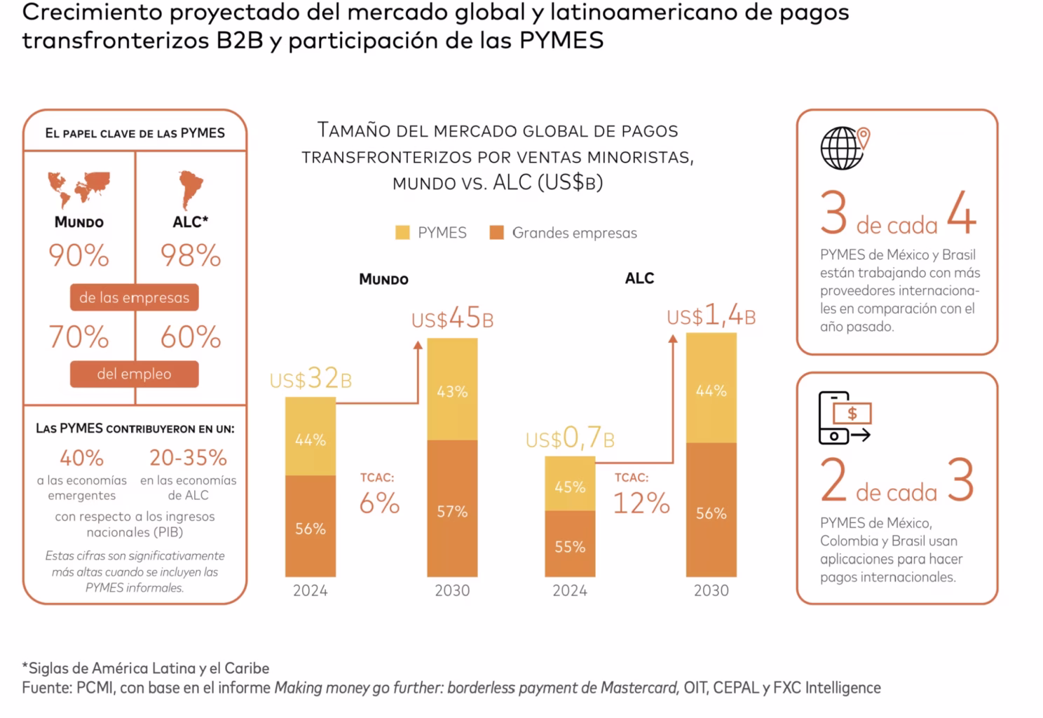Las pequeñas y medianas empresas (pymes) de América Latina y el Caribe enfrentan importantes desafíos al realizar pagos internacionales, que afectan su crecimiento y competitividad global. Así lo revela el informe “Pequeñas empresas, grandes oportunidades: Liberando el potencial de las PYMES en el espacio transfronterizo de América Latina”, elaborado por Mastercard junto a Payments and Commerce Market Intelligence (PCMI) y la consultora K2.