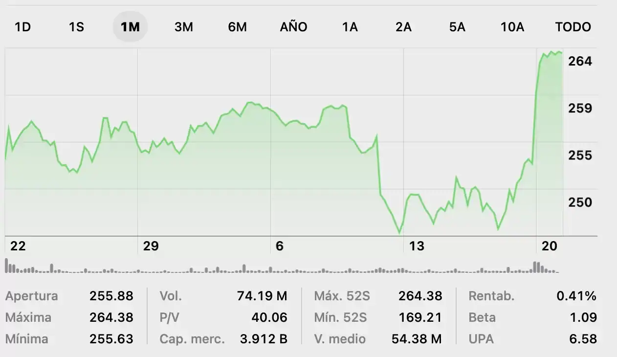 El entusiasmo en Wall Street no tardó en reflejarse. Loop Capital mejoró la calificación de Apple de Mantener a Compra, aumentando su precio objetivo de US$226 a US$315, lo que representa un potencial alcista de casi 25%.