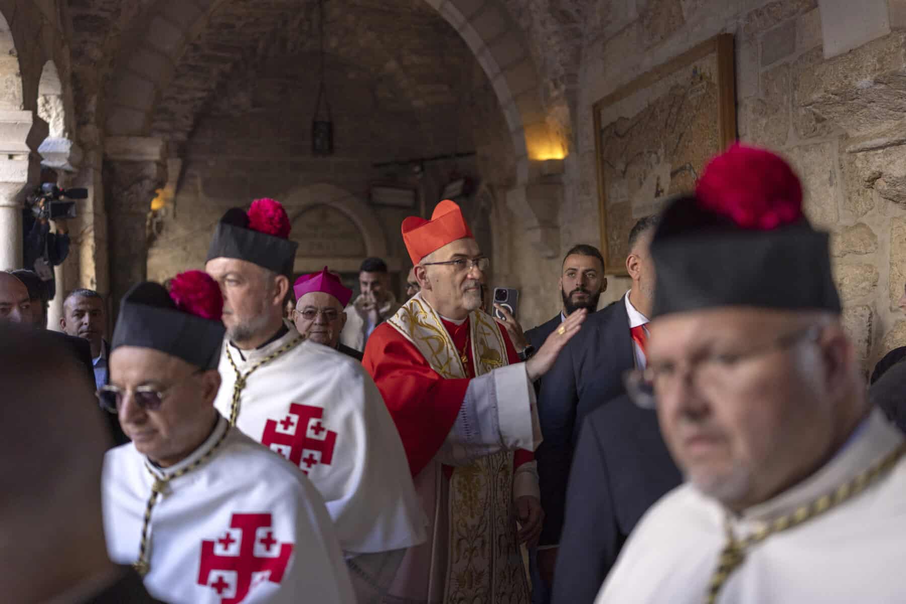El patriarca latino de Jerusalén, el cardenal Pierbattista Pizzaballa, llegó a Belén antes de presidir la tradicional misa del Gallo en la Iglesia de la Natividad.