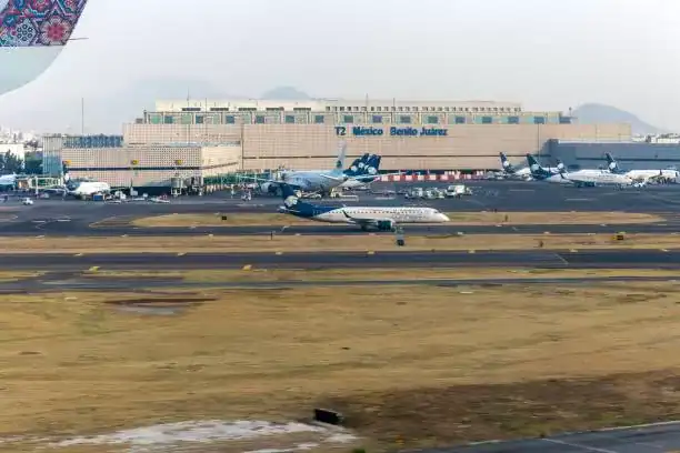 View from landing plane of Terminal two, T2 building, Benito Juarez International airport, Mexico City, Mexico. (Photo by: Geography Photos/Universal Images Group via Getty Images)