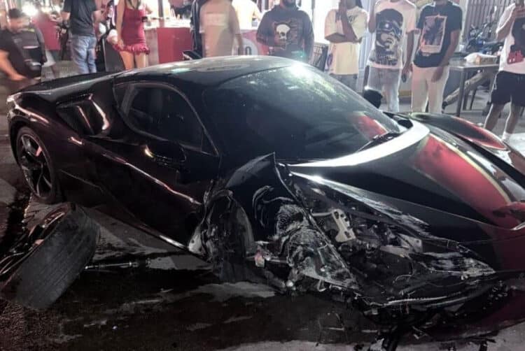 El Ferrari SF90 resultó parcialmente destruido, con daños considerables en la parte frontal y la carrocería.