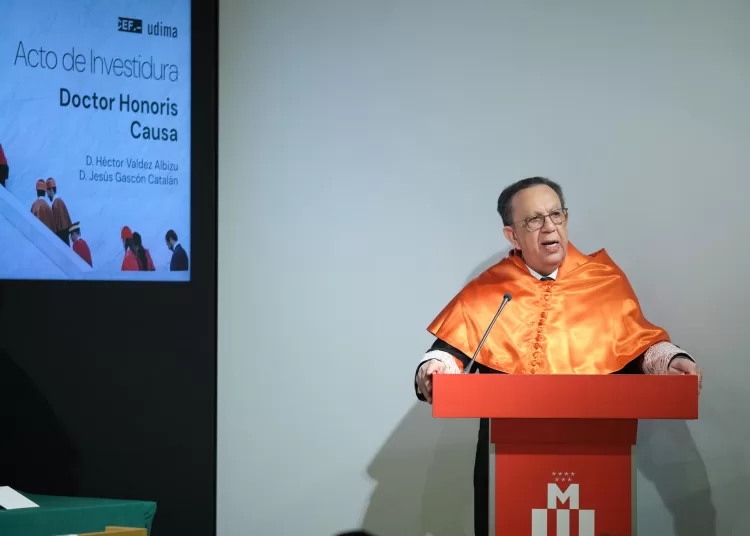Madrid, España. El gobernador del Banco Central de la República Dominicana (BCRD), Héctor Valdez Albizu, fue investido el 1 de octubre como Doctor Honoris Causa por la Universidad a Distancia de Madrid (UDIMA), perteneciente al Grupo Educativo CEF, en reconocimiento a sus aportes al desarrollo económico y a la estabilidad macroeconómica de la República Dominicana.