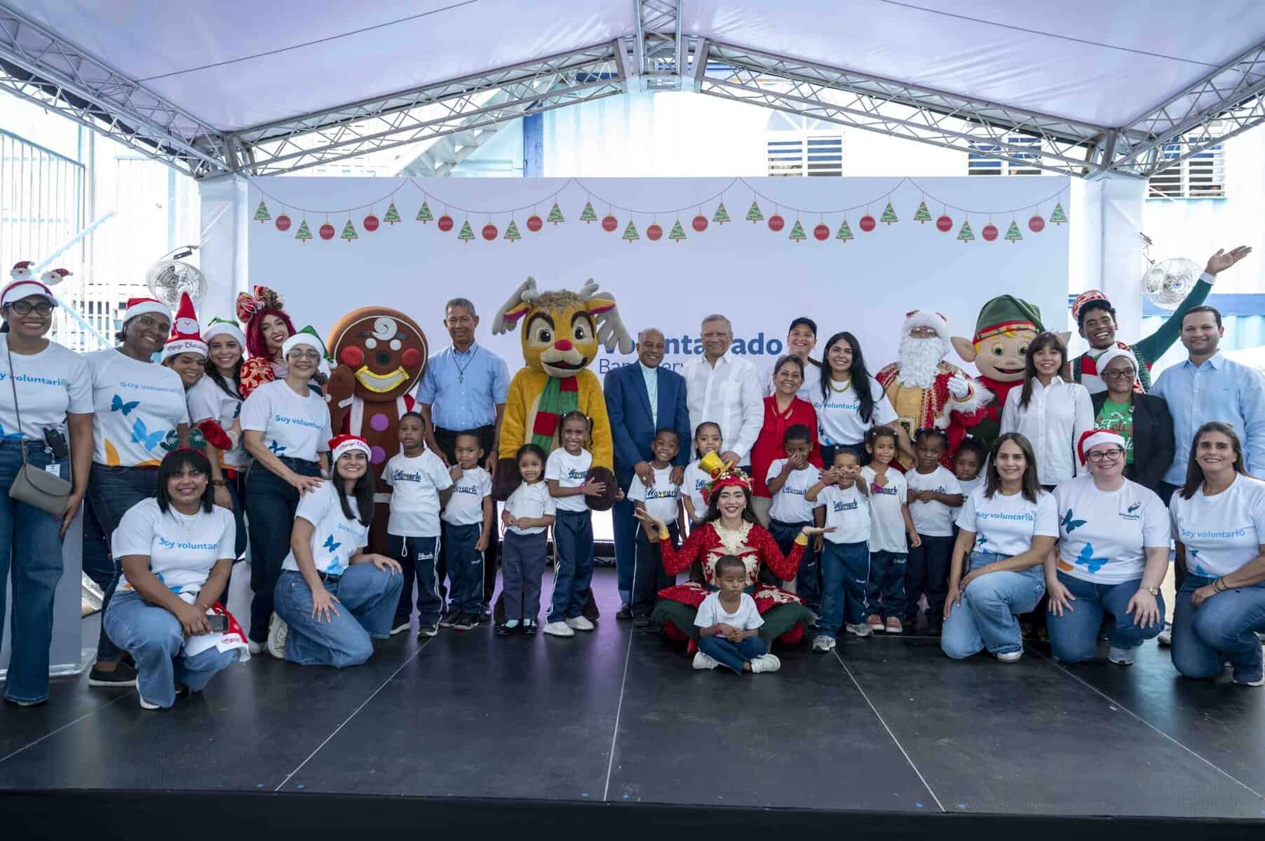 Santo Domingo. – El Voluntariado Banreservas llevó alegría a decenas de niños de la Escuela Movearte, en el Dique del río Ozama, durante su tradicional Fiesta de Navidad, actividad que se realizó de manera simultánea con un operativo masivo del programa ambiental “Vida para el Ozama”.