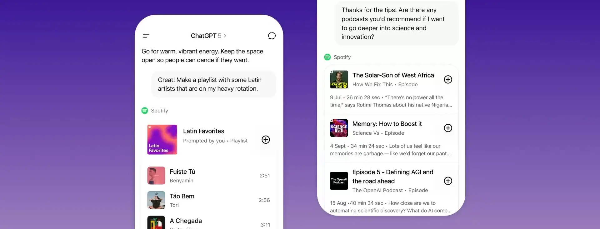 La integración posibilita que los usuarios conecten sus cuentas de Spotify con ChatGPT y soliciten listas de reproducción o pódcasts adaptados a su estado de ánimo, género favorito o artista preferido.