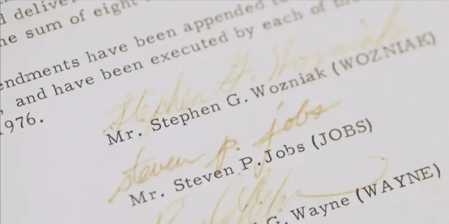 El contrato de tres páginas estableció la creación de Apple Computer Company el 1 de abril de 1976, y fue firmado por Steve Jobs, Steve Wozniak y el tercer cofundador, Ronald Wayne. El documento fijó las participaciones iniciales en 45% para Jobs, 45% para Wozniak y 10% para Wayne. El lote también incluye papeles relacionados con la salida de Wayne 12 días después, cuando recibió US$800 por renunciar a su participación—una decisión que, según cálculos teóricos, tendría hoy un valor cercano a US$409 mil millones, considerando la capitalización de mercado actual de Apple (aprox. US$4.1 billones).